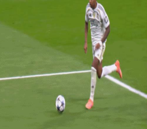 维尼修斯上来就造成了一个潜在的点球机会,不过裁判没吹。罗德里戈跟他在对侧两翼齐飞的确是给曼城造成了巨大的问题,皇马的效率打出来了,这是在前几轮比赛里没有的。