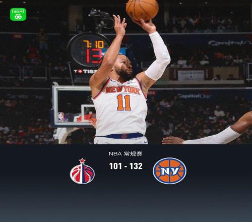 尼克斯132101轻取奇才取7连胜,布里奇斯23+4+5,布伦森21分